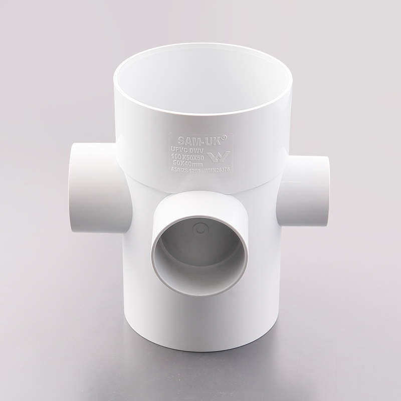 DWV Four Way Riser 100mm x (50mm * 3) x 40mm x 88 Deg, MF Boss Junction