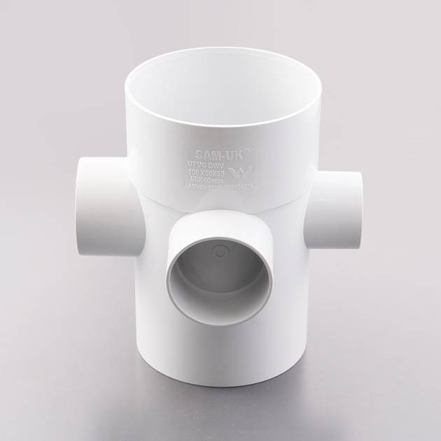 DWV Four Way Riser 100mm x (50mm * 3) x 40mm x 88 Deg, MF Boss Junction